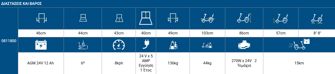 • Battery: AGM 24V, 12Ah